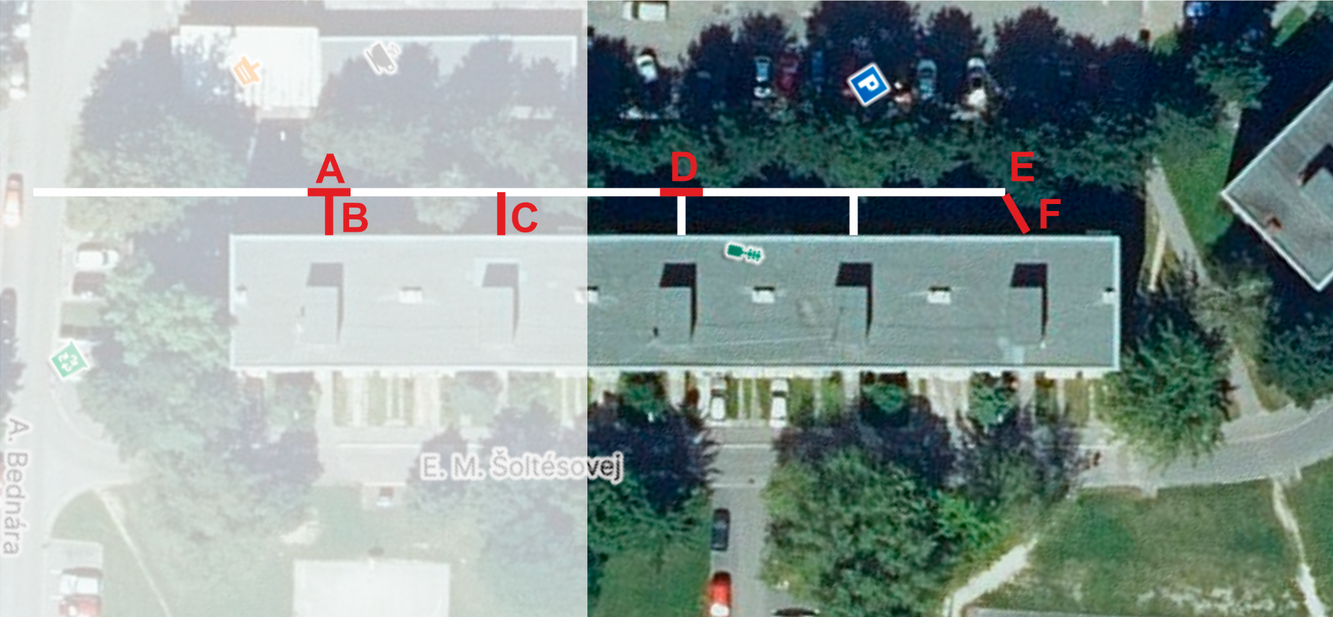 - Bod E: Rúra je približne jeden meter v protispáde. Nejde o závažnú poruchu, avšak je potrebné ju pravidelne monitorovať.